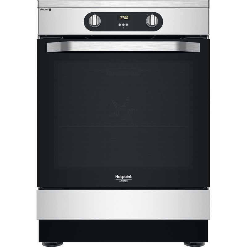 Cechy wolnostojącej kuchenki 60x60 Hotpoint: 4 płyty indukcyjne. Kolor inox. Zasilanie elektryczne. Wielofunkcyjna metoda gotowania. 60 cm szerokości.