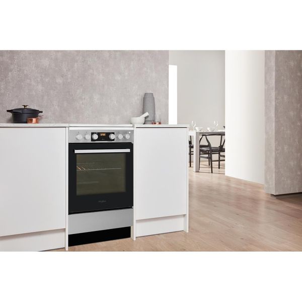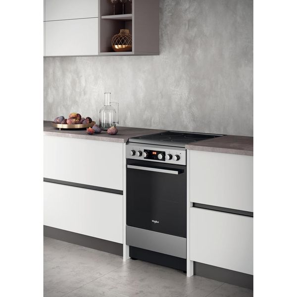 Cechy wolnostojącej kuchenki 50x60 Whirlpool: kolor inox. 4 płyty grzewcze. Zasilanie elektryczne. 4 płyty halogenowe. 4 płyty indukcyjne.