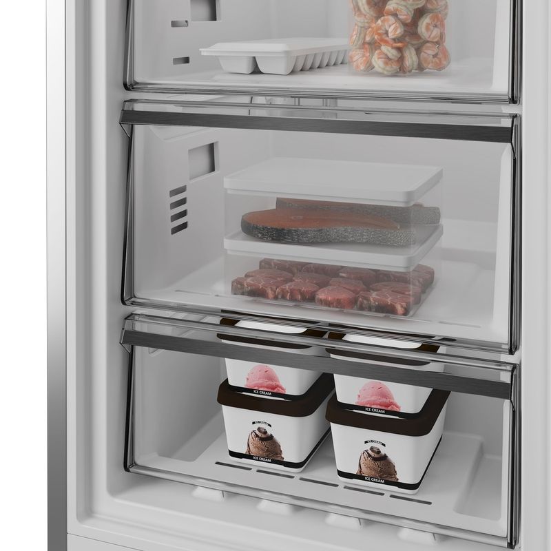 Whirlpool WPC 84I XP to nowoczesna chłodziarko‑zamrażarka wolnostojąca idealna do codziennego przechowywania żywności w domu. Urządzenie wykorzystuje zaawansowaną technologię No Frost, która eliminuje konieczność ręcznego rozmrażania zamrażarki i zapobiega tworzeniu się lodu. Dzięki funkcji szybkiego zamrażania oraz trybom takimi jak wakacje i eco, możesz łatwo dostosować pracę sprzętu do swoich potrzeb, oszczędzając energię i utrzymując optymalne warunki dla produktów. Alarm otwartych drzwi przypomni Ci, gdy drzwi pozostaną otwarte zbyt długo, a oświetlenie LED zapewni dobry podgląd na zawartość wnętrza. Zamienny kierunek otwierania drzwi daje dodatkową elastyczność przy dopasowywaniu urządzenia do kuchni.