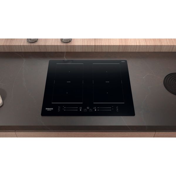 Cechy płyty indukcyjnej szklano-ceramicznej Hotpoint: zasilanie elektryczne. 4 pola grzewcze.