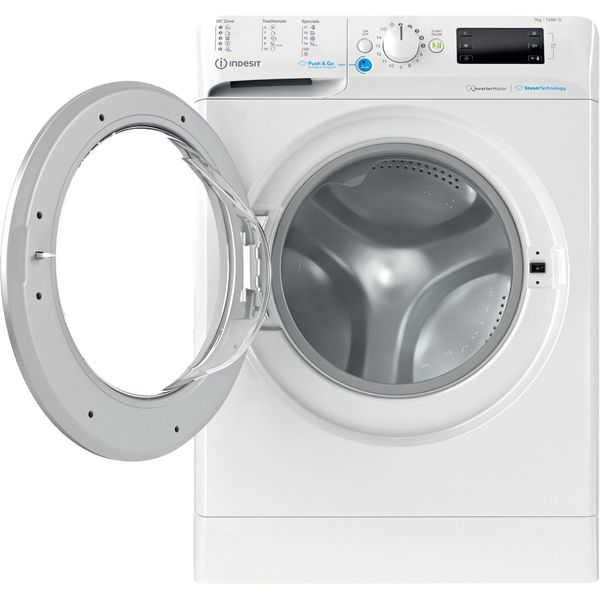 Cechy wolnostojącej pralki ładowanej od przodu Indesit: przestronny bęben o pojemności 7,0 kg. Klasa energetyczna B. Szybkie i skuteczne wirowanie z prędkością 1200 obrotów na minutę. Kolor biały.