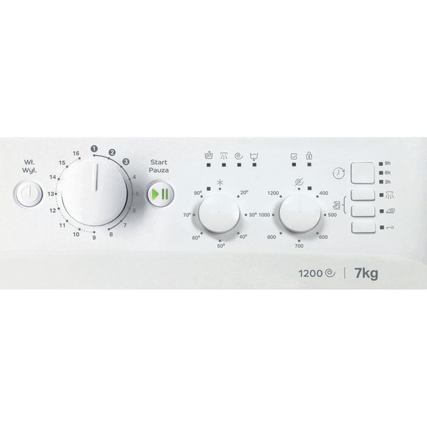 Cechy wolnostojącej pralki ładowanej od przodu Indesit: przestronny bęben o pojemności 7,0 kg. Szybkie i skuteczne wirowanie z prędkością 1200 obrotów na minutę. Kolor biały.
